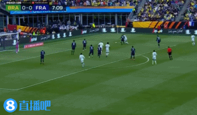 第8分钟,巴西后场断球打反击,维尼修斯禁区前沿左路带球内切,被法国球员抢先拦截!↓